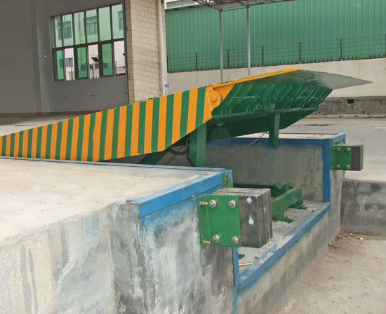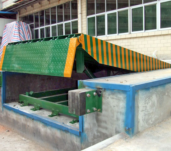 定義: 貨臺(tái)高度調(diào)節(jié)板是工業(yè)物流搬運(yùn)與裝卸的輔助設(shè)備之一。通常(嵌入)安裝于裝卸貨碼頭中,起到調(diào)節(jié)裝卸貨碼頭與運(yùn)輸卡車之間的高度差和間隙。保障搬運(yùn)工具(如機(jī)動(dòng)叉車或手動(dòng)液壓托盤搬運(yùn)車)能夠暢通無(wú)阻地出入卡車車廂進(jìn)行物料的裝卸工作。 結(jié)構(gòu)與工作原理: 結(jié)構(gòu):主要有三個(gè)部分,底座、承載板和動(dòng)力系統(tǒng)。 底座與裝卸貨臺(tái)固定,承載板分主板與搭板,使用時(shí)由動(dòng)力系統(tǒng)升起主板,在主